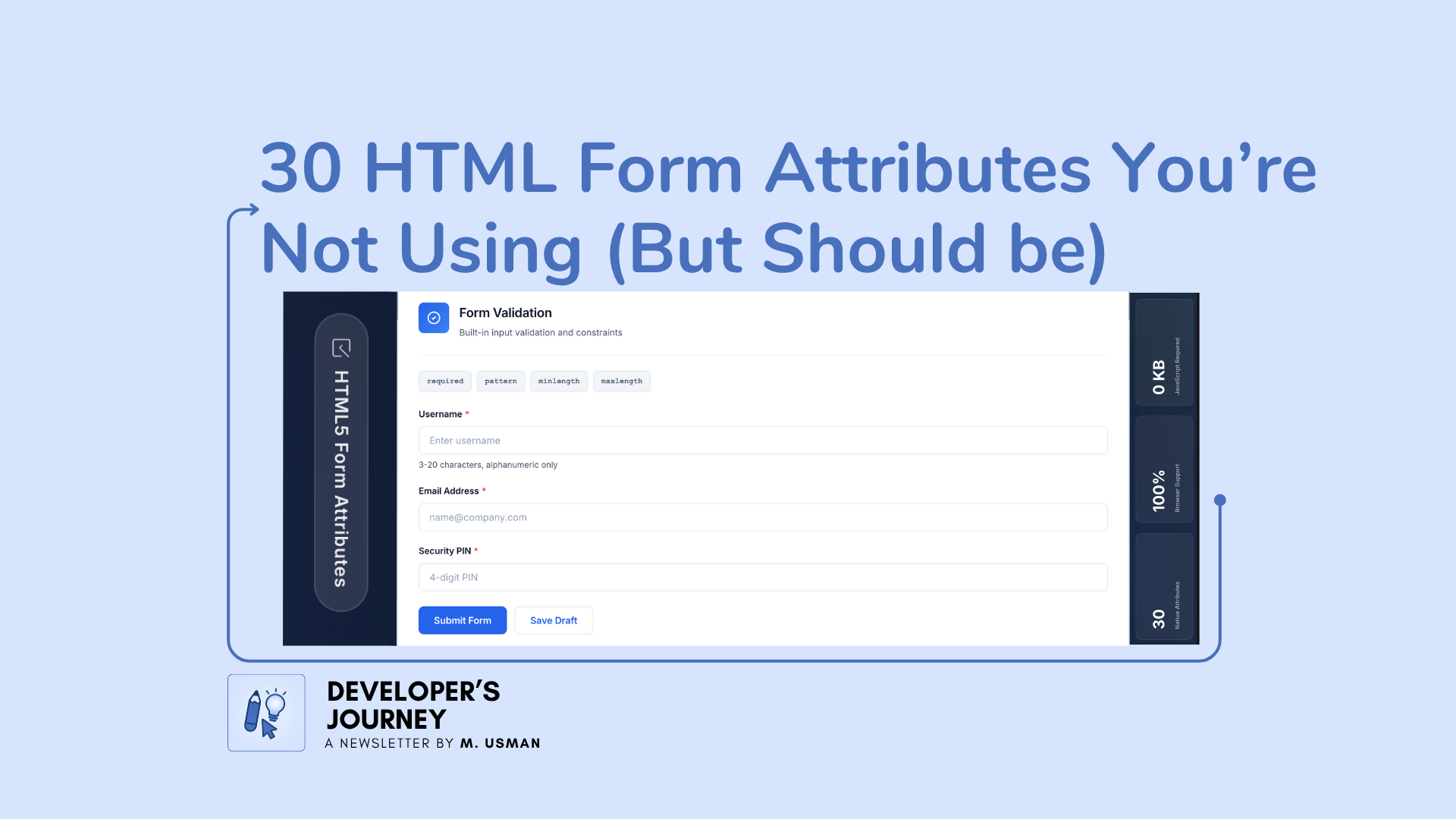 HTML forms have been around forever, but honestly, most developers are still writing the same basic forms they learned years ago. Meanwhile, HTML has been quietly adding powerful attributes that can save you from writing tons of JavaScript. I’m talking about validation, user experience improvements, and accessibility features that are just sitting there, ready to use.