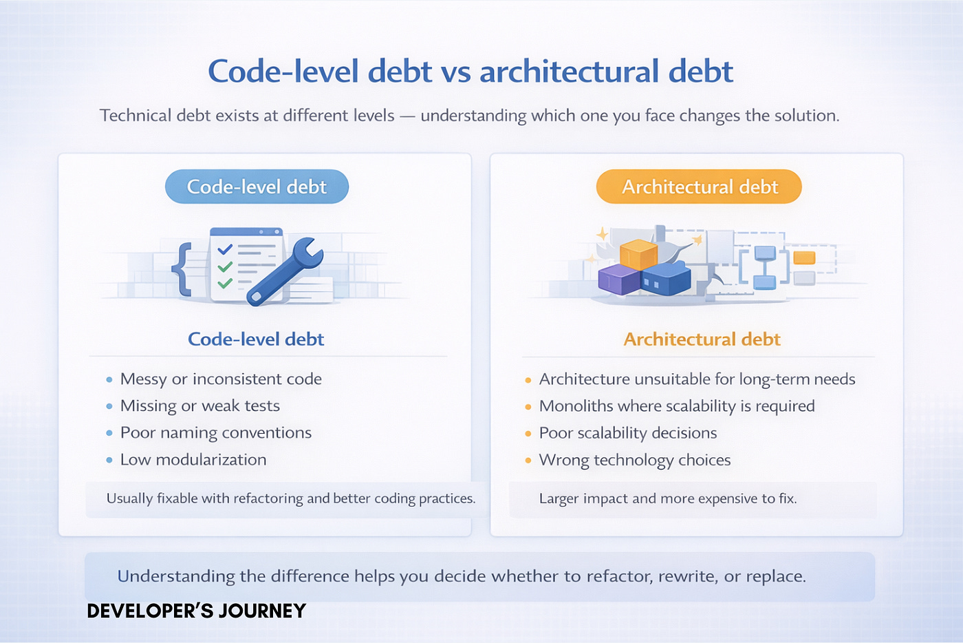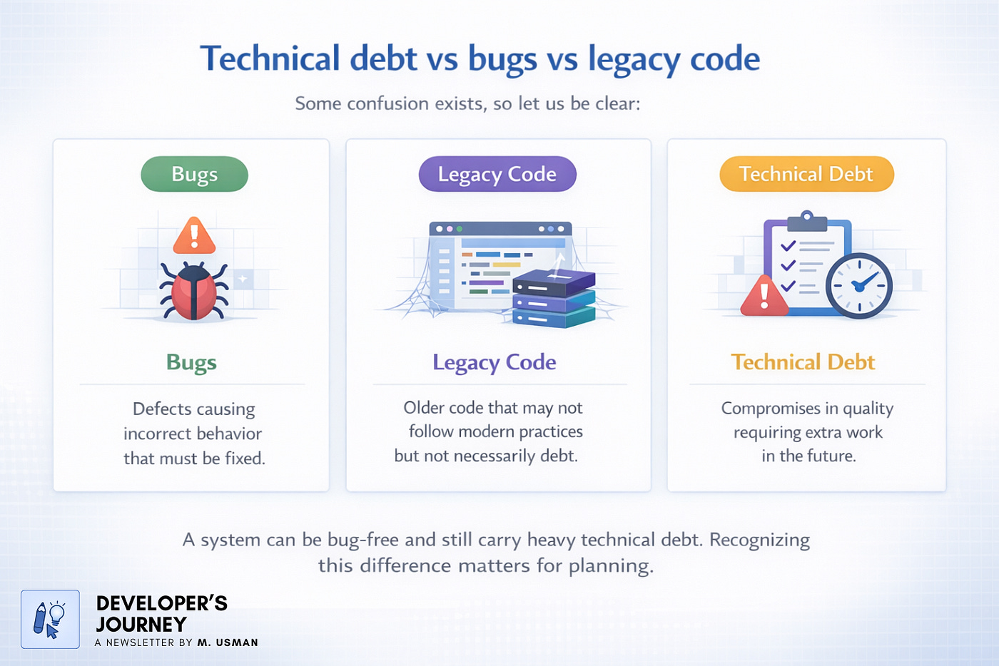 Technical debt is not always a bad thing, but only if you know you’re taking it and you communicate it clearly. Most problems start when teams don’t admit there is debt. Then it shows up later as instability, delays, and cost.